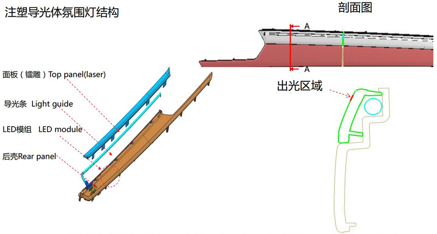 2、如何保證發光均勻性氛圍燈在內飾多處存在,前后、左右發光均勻性直接影響用戶視覺舒適感。